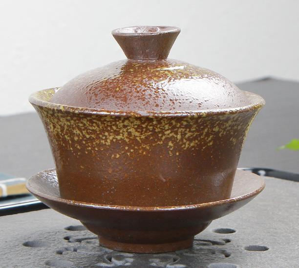 268100.1 Гайвань ОБЖИГ В ПЕЧИ "Широкая" имит.обжига h=9,5см, l=10см, 150мл, керамика корич.-желтый