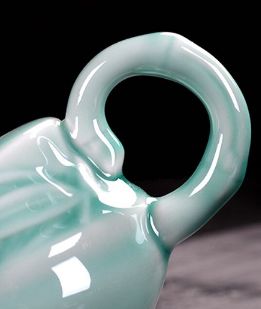 Изящная ручка изготовлена вручную в виде бамбуковой веточки, удобно держать, не нагревается. Глазурь глянцевая но не скользит.