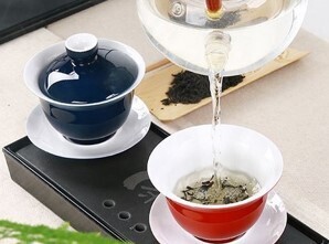 РАЗМЕР: Высота 100мм, диаметр гайвани 100мм, блюдца 100мм.