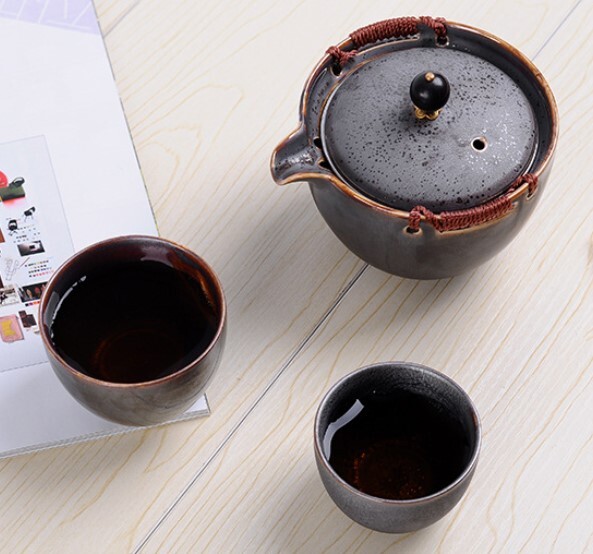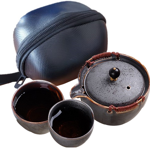 СОСТАВ: Чайник 180мл, 2 пиалы 100мл и 50мл, сито, полотенце, дорожный кейс.