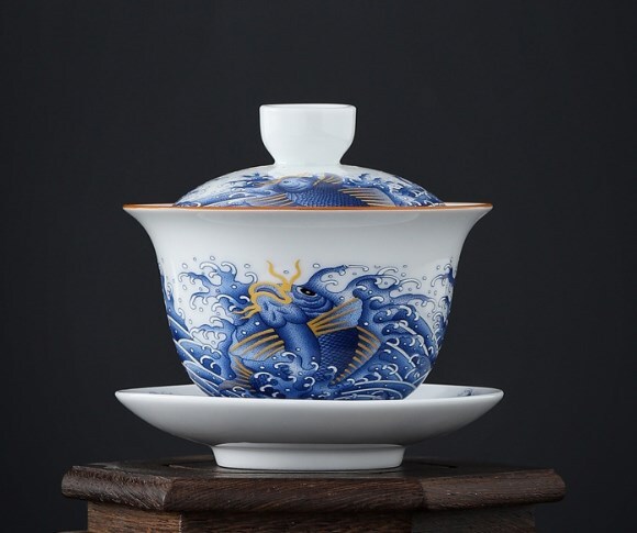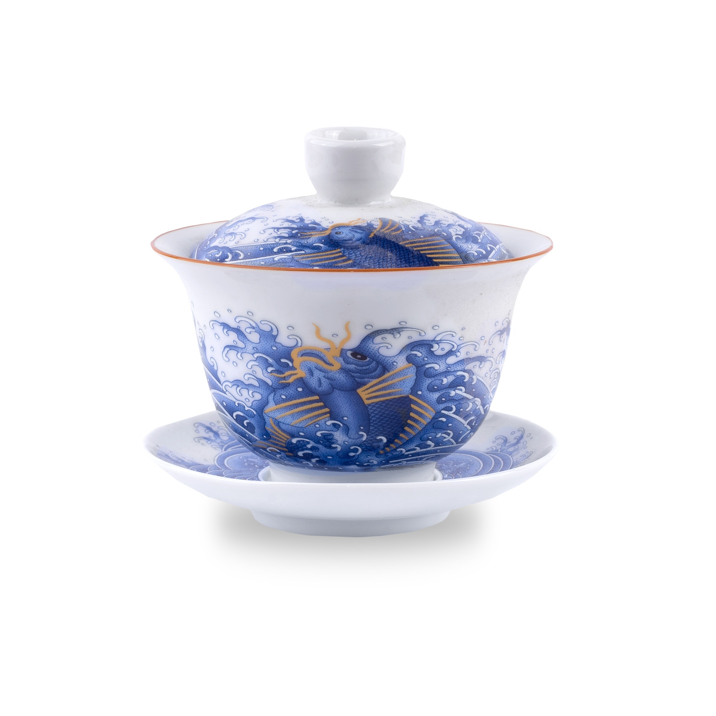 268130.1 Гайвань УДАЧА "Синий карп" 180 мл, h=95мм, d=100мм, белый фарфор