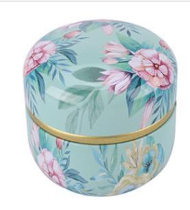 269010 Банка ЦВЕТЫ "Цветы на бирюзовом" двойная крышка, h=8,5см, d=8,5см, жесть бирюзовый