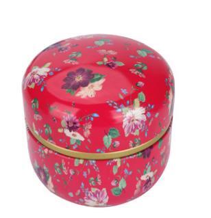 269010.2 Банка ЦВЕТЫ "Цветы на красном" двойная крышка, h=8,5см, d=8,5см, жесть красный