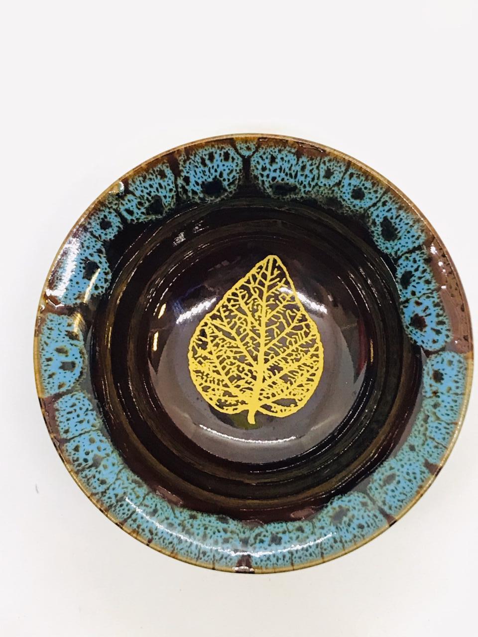 278021.2 Пиала ЛИСТ В ЧАШЕ "Листик на дне" h=4см, d=9см, керамика голубой
