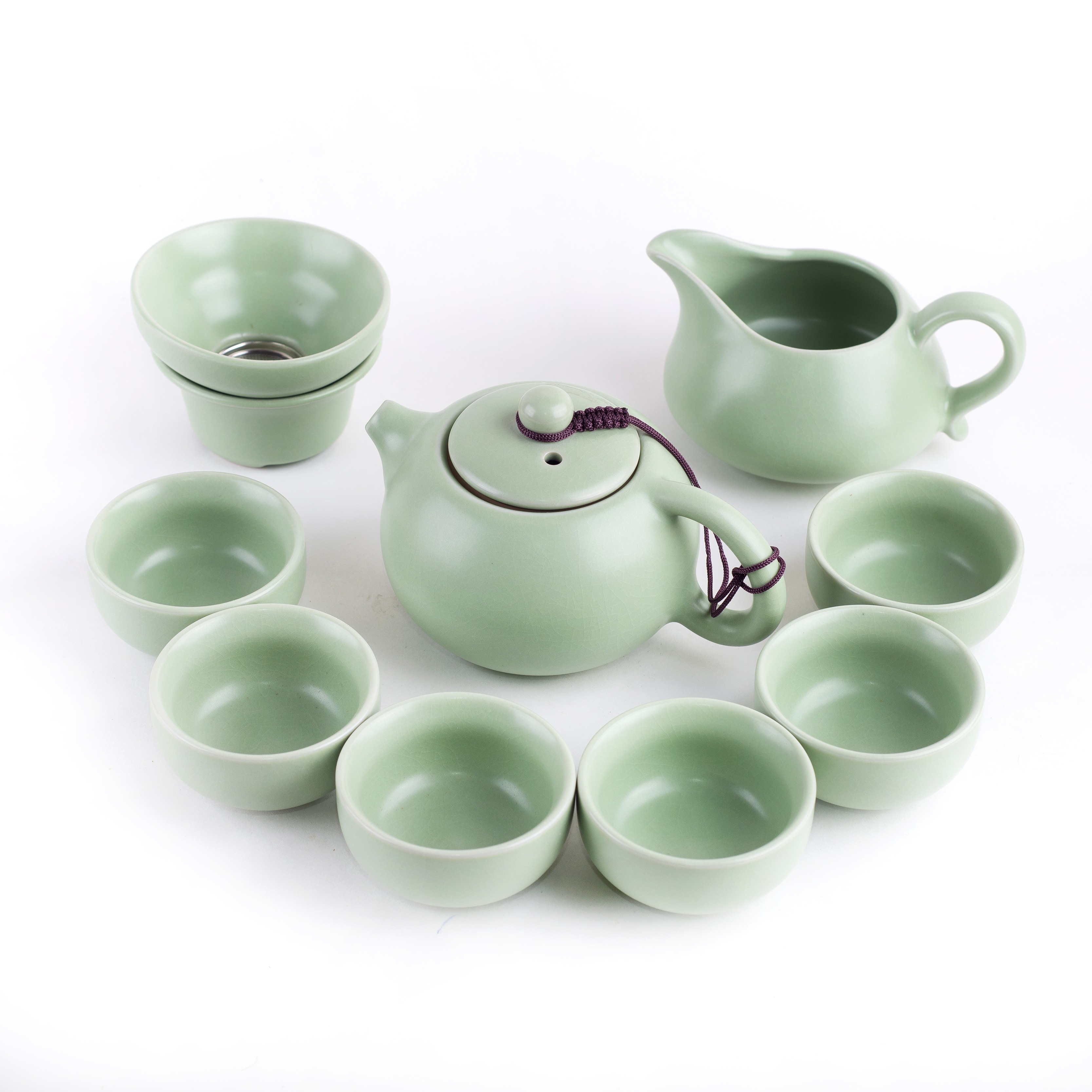 Состав: Чайник, сливник, ситечко с подставкой, 6 пиал, подарочная коробка.