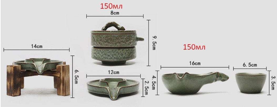 • Чайник: диаметр 8 см, высота 9,5 см; объём 150 мл