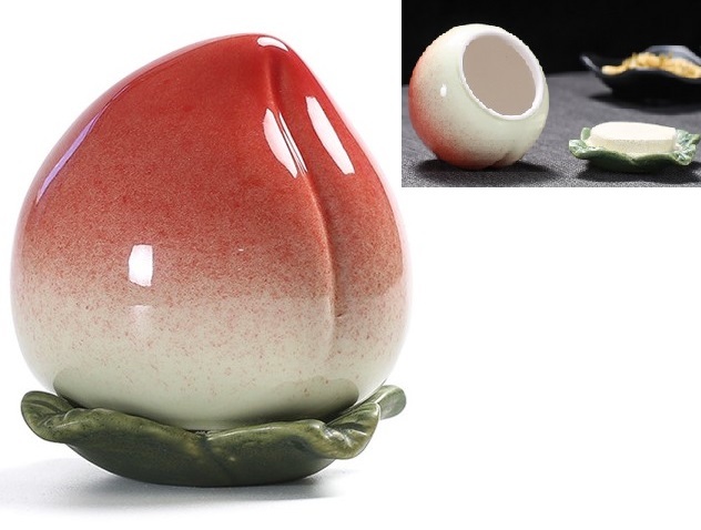 В китайской традиции персик – почитаемый талисман бессмертия, благополучия и изобилия, согласно древним поверьям, плоды персика являются основой эликсира бессмертия. Подарок в виде чайницы-персика – талисман с пожеланиями крепкого здоровья и долгой, счастливой жизни.