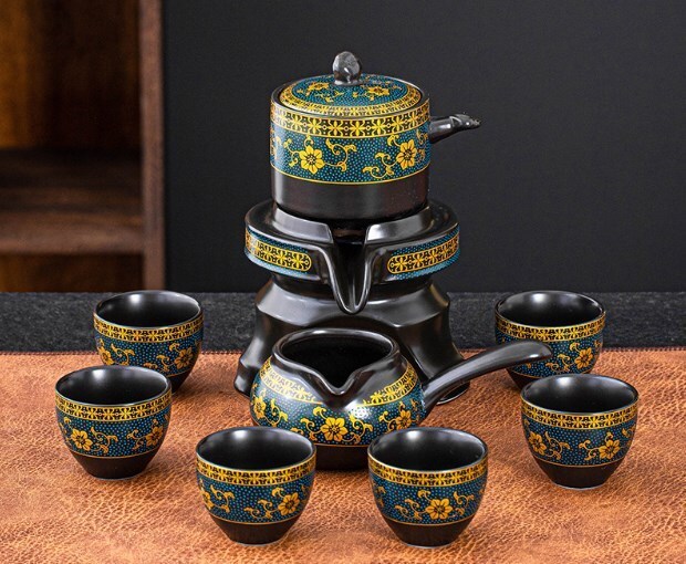 Гайвань, механизм слива - жернова, сливник, 8 пиал