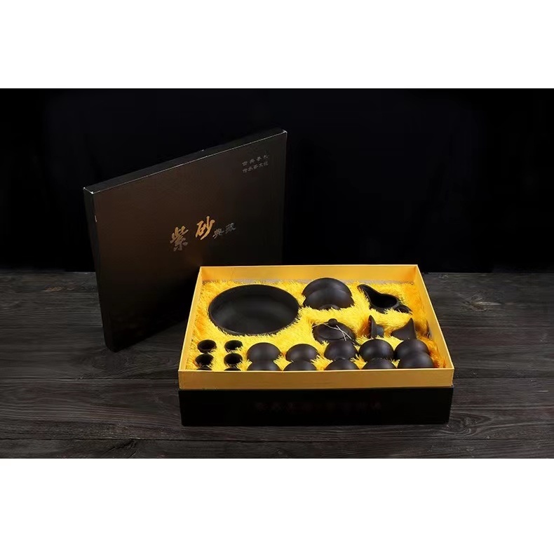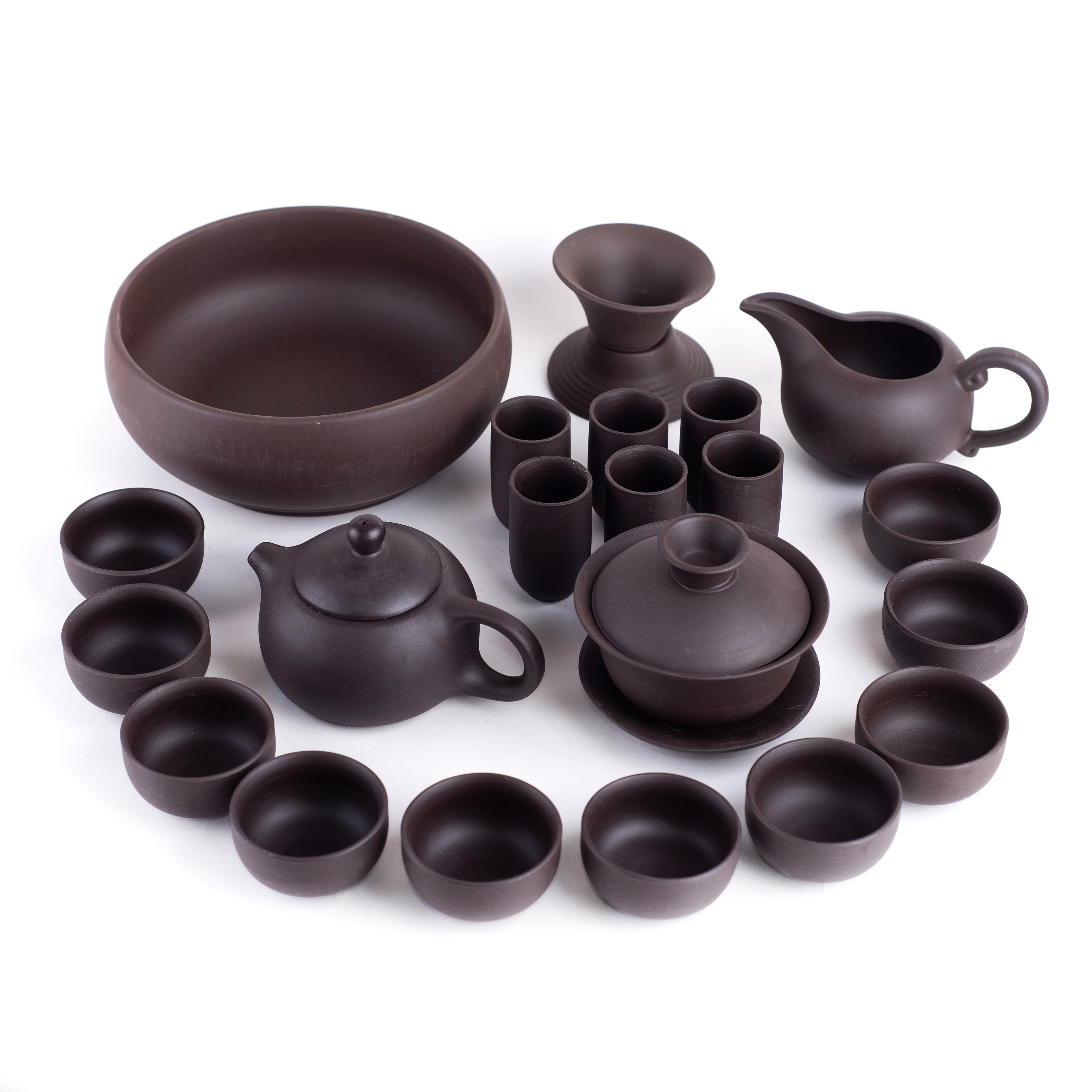 СОСТАВ: Чайник 170мл, гайвань 150мл, сливник, сито, 6 чайных пар + 4 пиалы по 50мл, "чайный пруд".