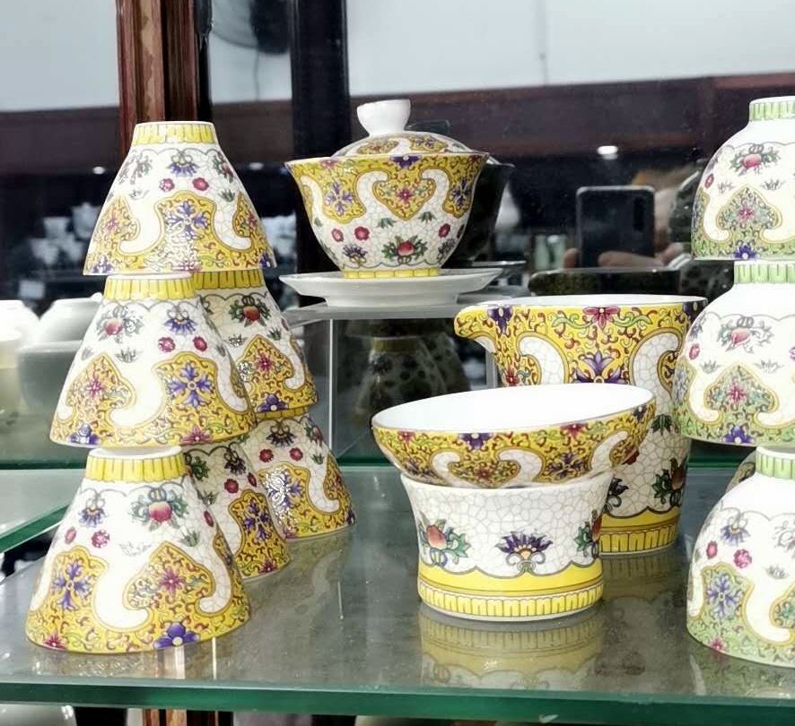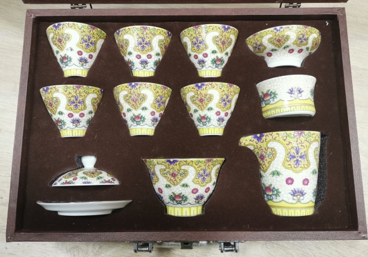 287003 Сервиз "Мозаика1" 6 пиал 70мл, гайвань 120мл, сливник 170мл, сито, дерев футляр фарфор желтый