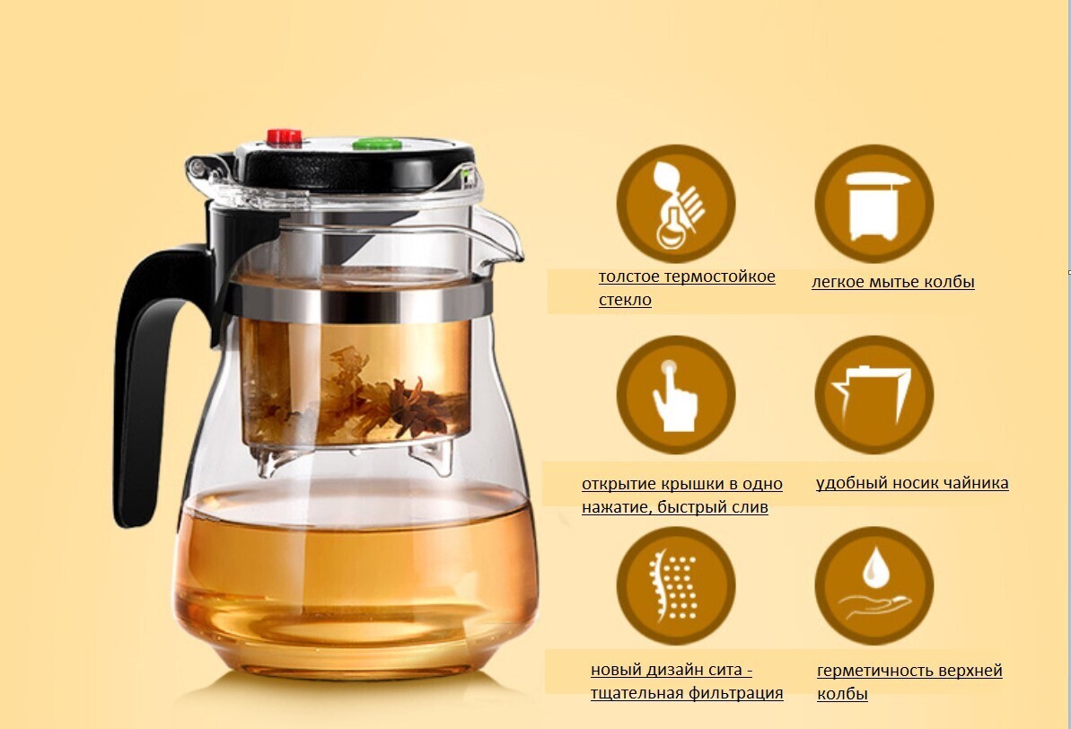 296001 Чайник изипот Б/носика, крышка съемная 750мл, H=15cm, D=9,5cm, стекло/плаcтик