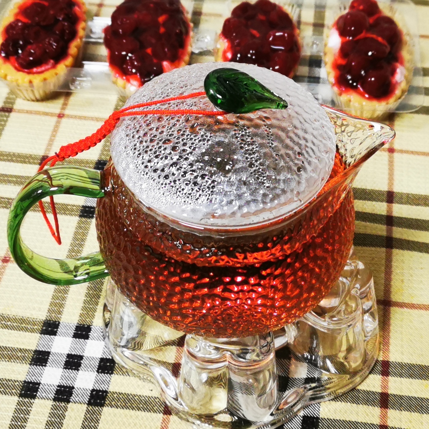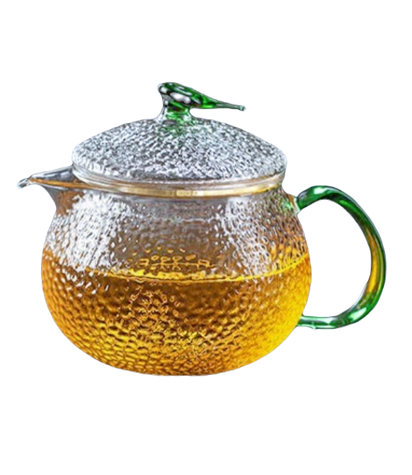 Оригинальный чайник с со стильным дизайном, с сито-колбой внутри. Линия носика повторяет линию декора в форме чайного листа на крышке, создавая ощущение утонченности, в то же время очертания чайника круглые с фактурой отбивного стекла, широкой крышкой и крупной ручкой.