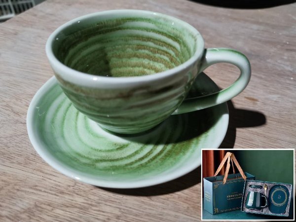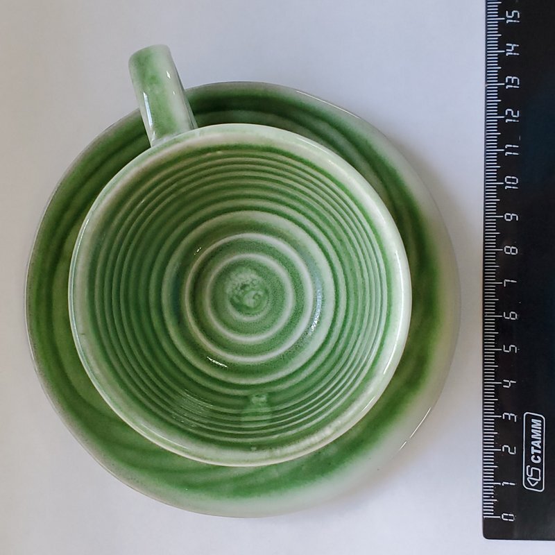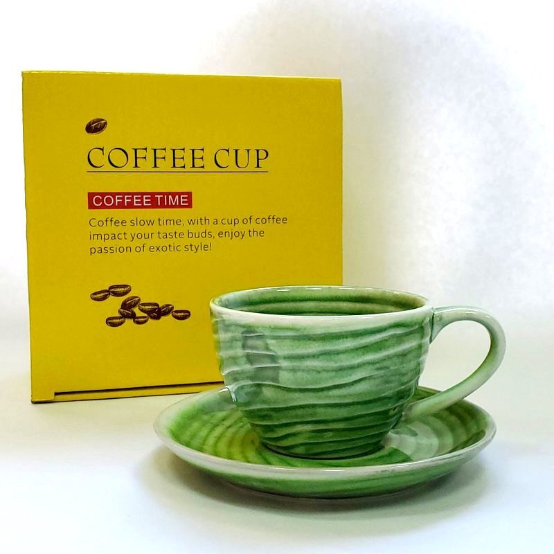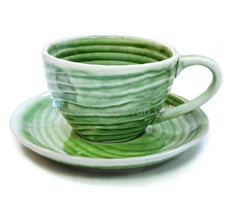 310503.2 Кружка с блюдцем "Зеленый песок" В ПОДАРОЧНОЙ КОРОБКЕ, 100мл, 13*13*6,5, керамика