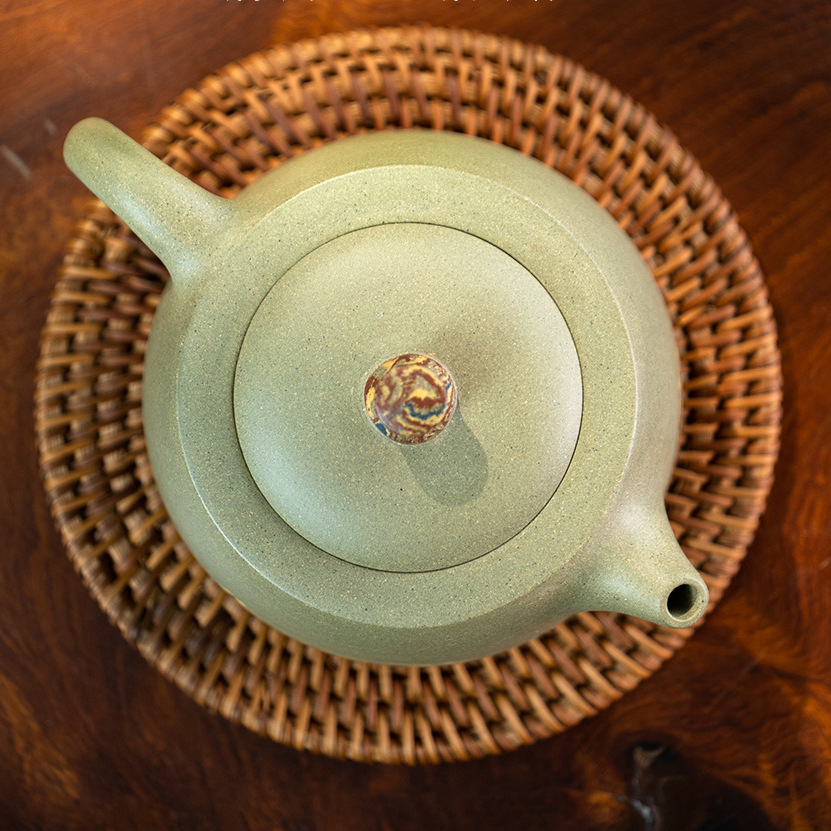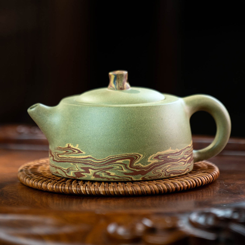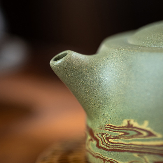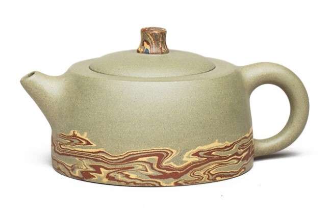МАТЕРИАЛ: Данный чайник изготовлен в технике смешивания исинской глины 3-х разных цветов: зелёной, желтой, коричневой.