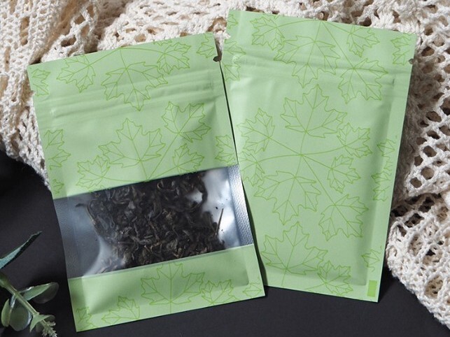 321001 Пакет для чая дой-пак, с зип-застежкой и с окном, цвет зеленый