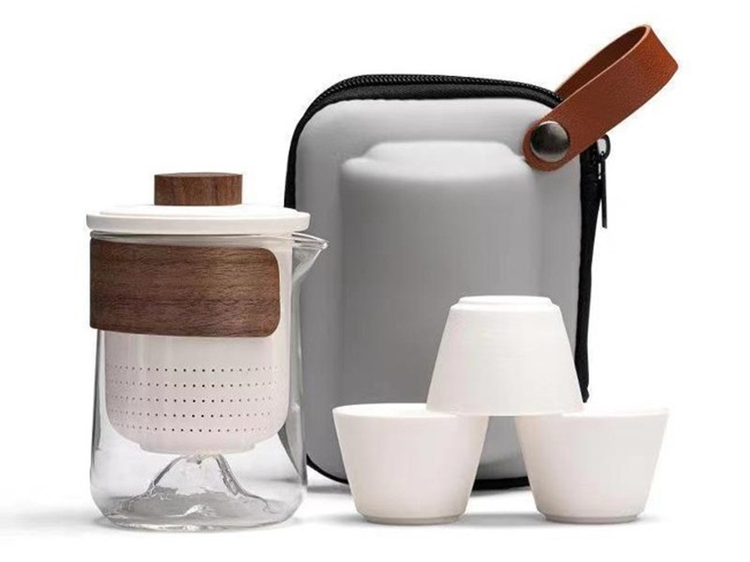 322006 Сервиз ДОРОЖНЫЙ "На троих" чайник 300мл, 3 пиалы 50мл, в дорожном чехле, керамика, белый