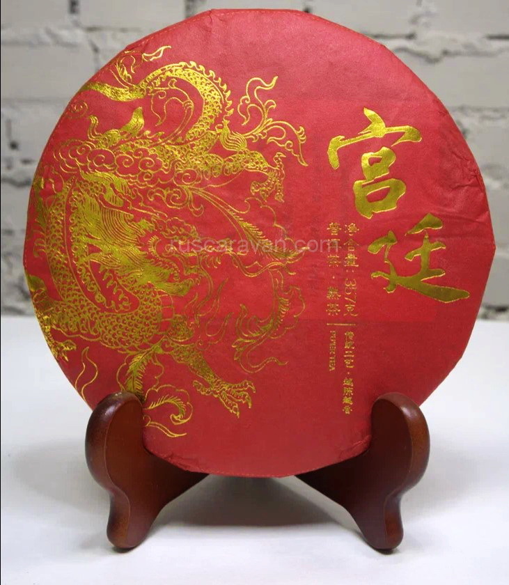 Одна из самых интересных новинок - блин шу пуэра от чайной фабрики Юньфусян «Красный дракон», стандартным весом 357 грамм. Первая ограниченная серия была выпущена в 2011 году, в преддверии Года Дракона (2012 год). Чай быстро получил популярность на китайском рынке и с тех пор купаж производится ежегодно. СЫРЬЕ: Используется высококачественный мэнхайский пуэр урожая 2017 года сортности «Дворцовый» (Гунтин), в нём присутствует большое количество почек, и сырье для чая выглядит просто потрясающе – темно-кориченвый лист среднего размера с аккуратными золотыми типсами.