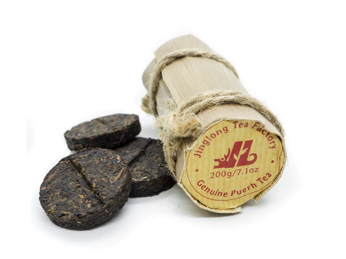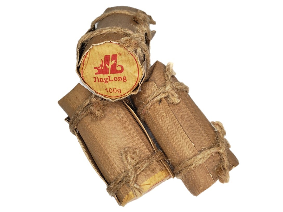 Классический пуэр, запрессованный в форме таблеток, 10 шт по 10 грамм каждая, произведенный на чайном заводе Цзинлун. Снаружи обернут в бамбуковый лист. Такая форма пуэра пользуется невероятной популярностью и относится к хитам продаж в ассортименте Цзинлуна. Содержание кофеина в порционных таблетках пуэра Цзинлун высокое. СЫРЬЕ: Изготовлен из купажа мэнхайского и линьцанского пуэров 7-го сорта. Степень ферментации средняя. Сухой лист темно-коричневого цвета, дает коричнево-черный настой, плотный и насыщенный. Произведен в 2024 году.