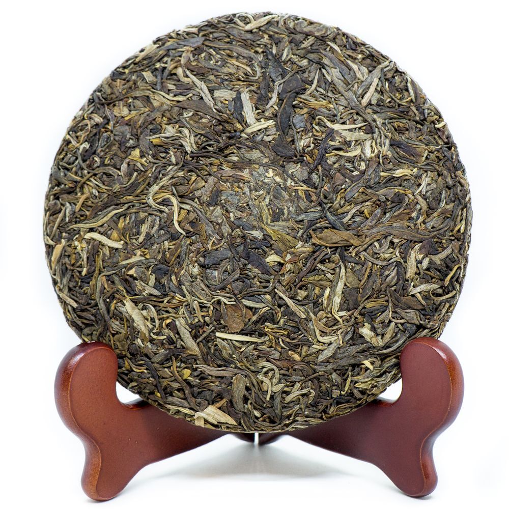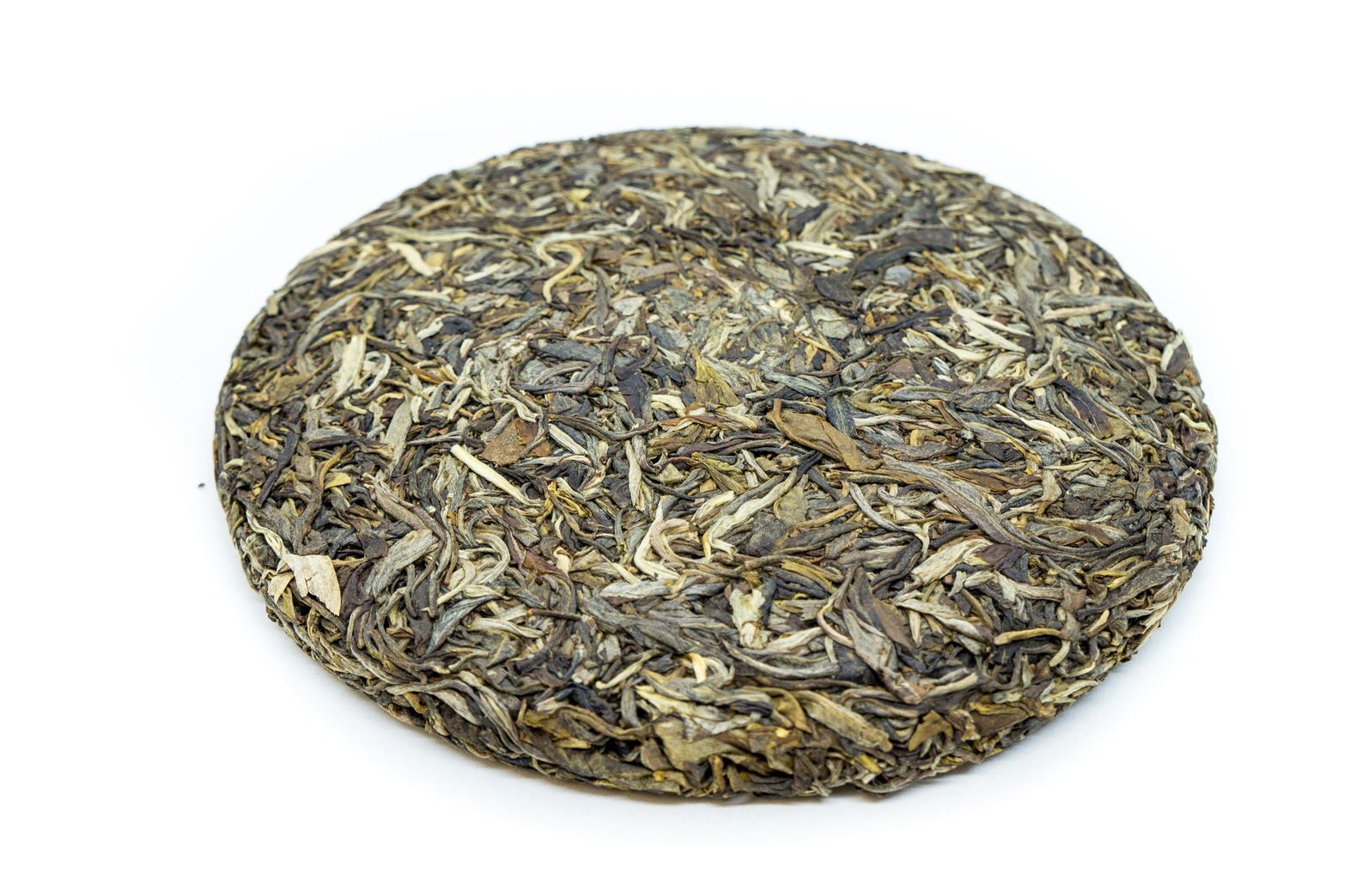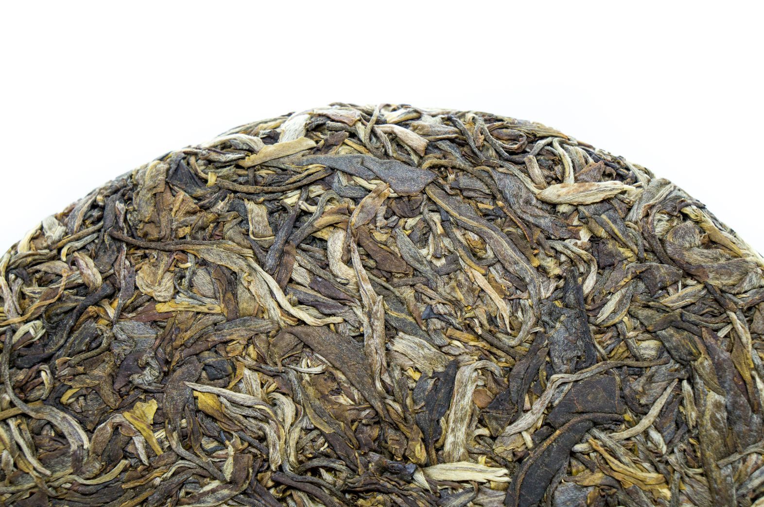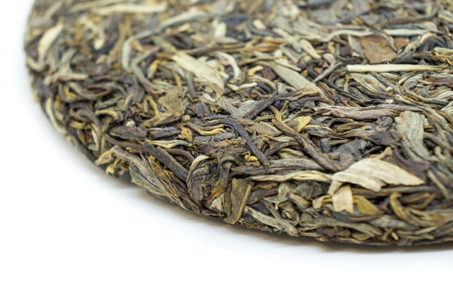 СЫРЬЕ: Блин шэн пуэра средней степени запрессовки. Сырье – однородные крупные листья с небольшим количеством пушистых чайных почек, собрано весной 2015 года. Лист плотный, но эластичный, имеет четко выраженные прожилки.