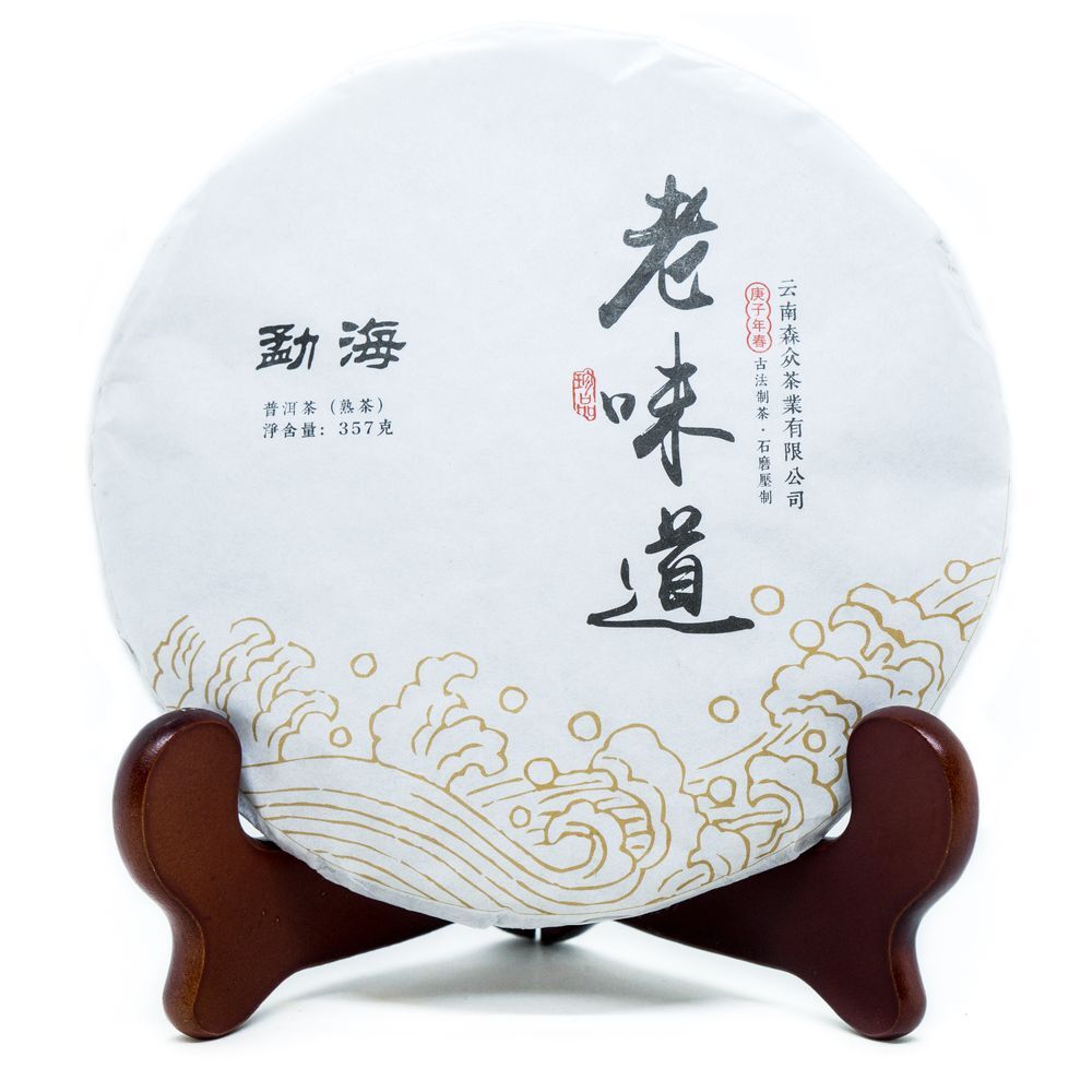 В оформлении блина от чайного завода Сэнчжун использовано не только выражение «Старинный вкус», и указано, какой старинный именно — вкус из уезда Мэнхай, где производится лучший шу (готовый или черный) пуэр.