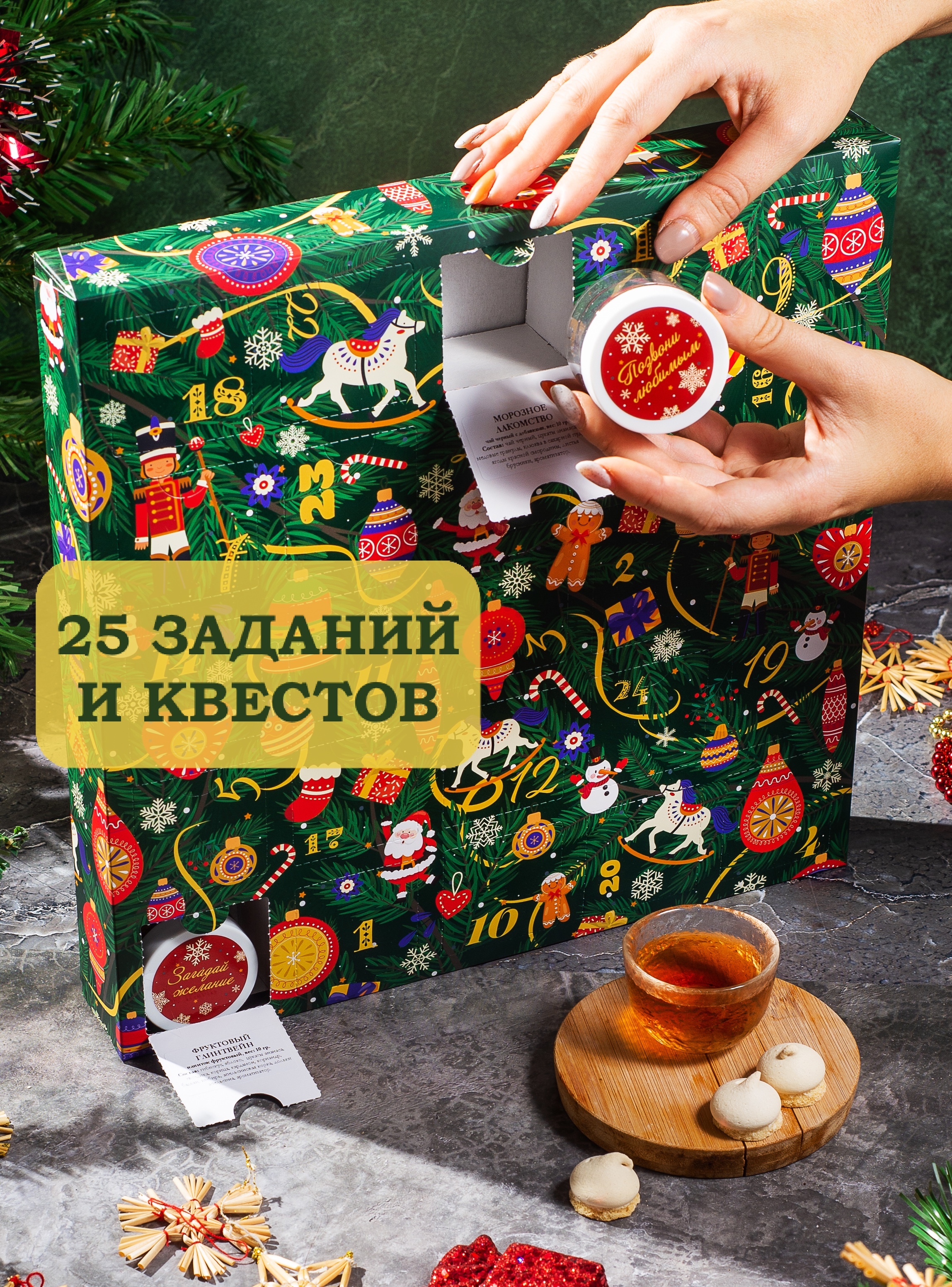 Открывайте каждый день новые вкусы, насладитесь разнообразием. 25 сюрпризов - заданий сделают ваше ожидание праздника приятным и увлекательным. Подарок на Новый год, Рождество, на день рождения, день всех влюбленных.