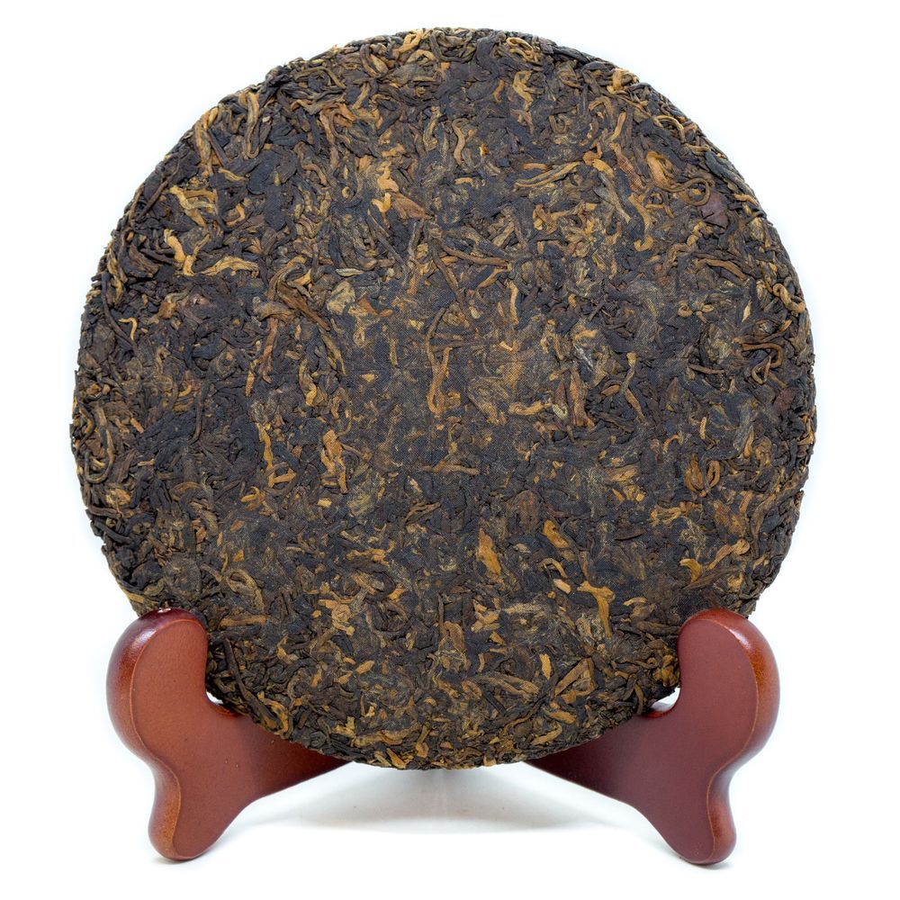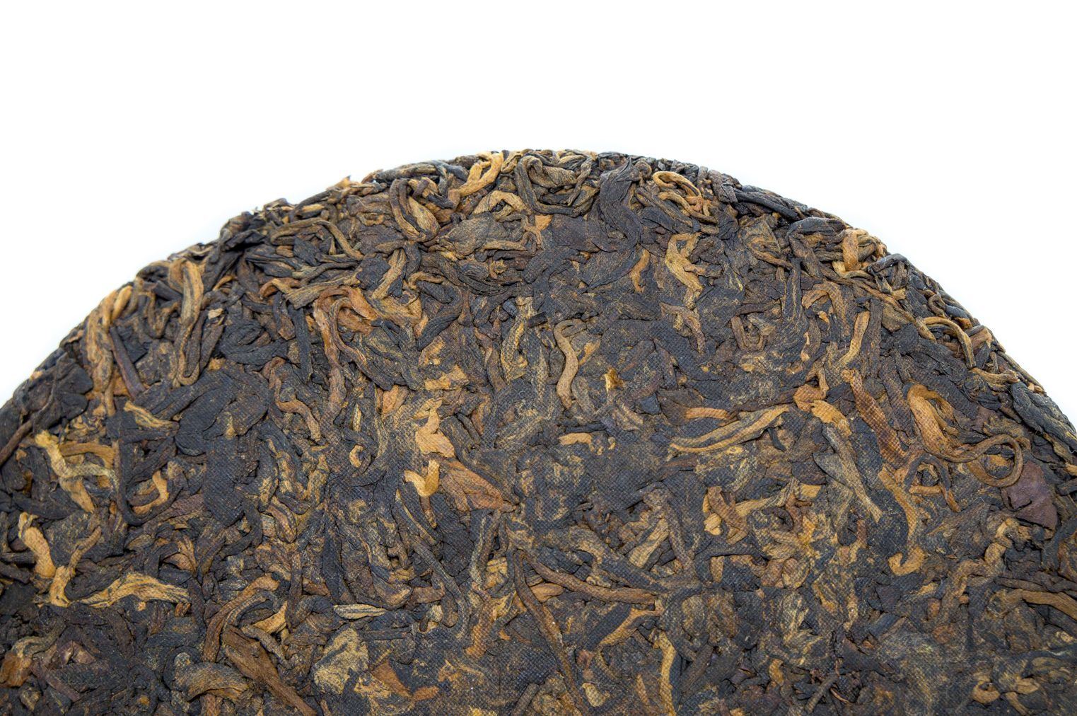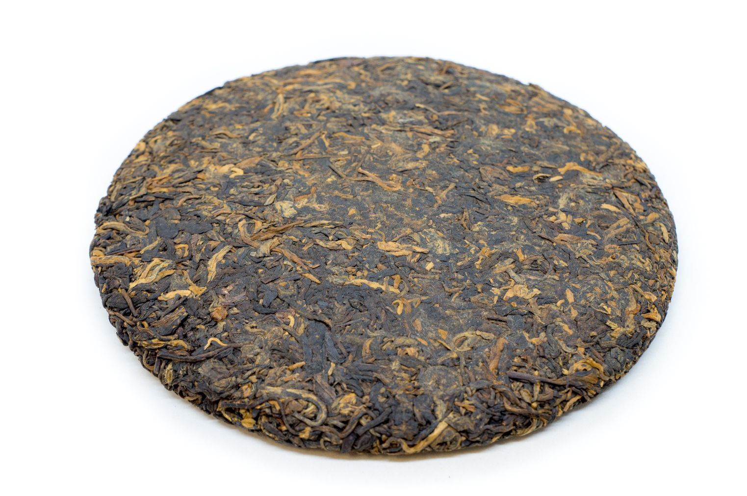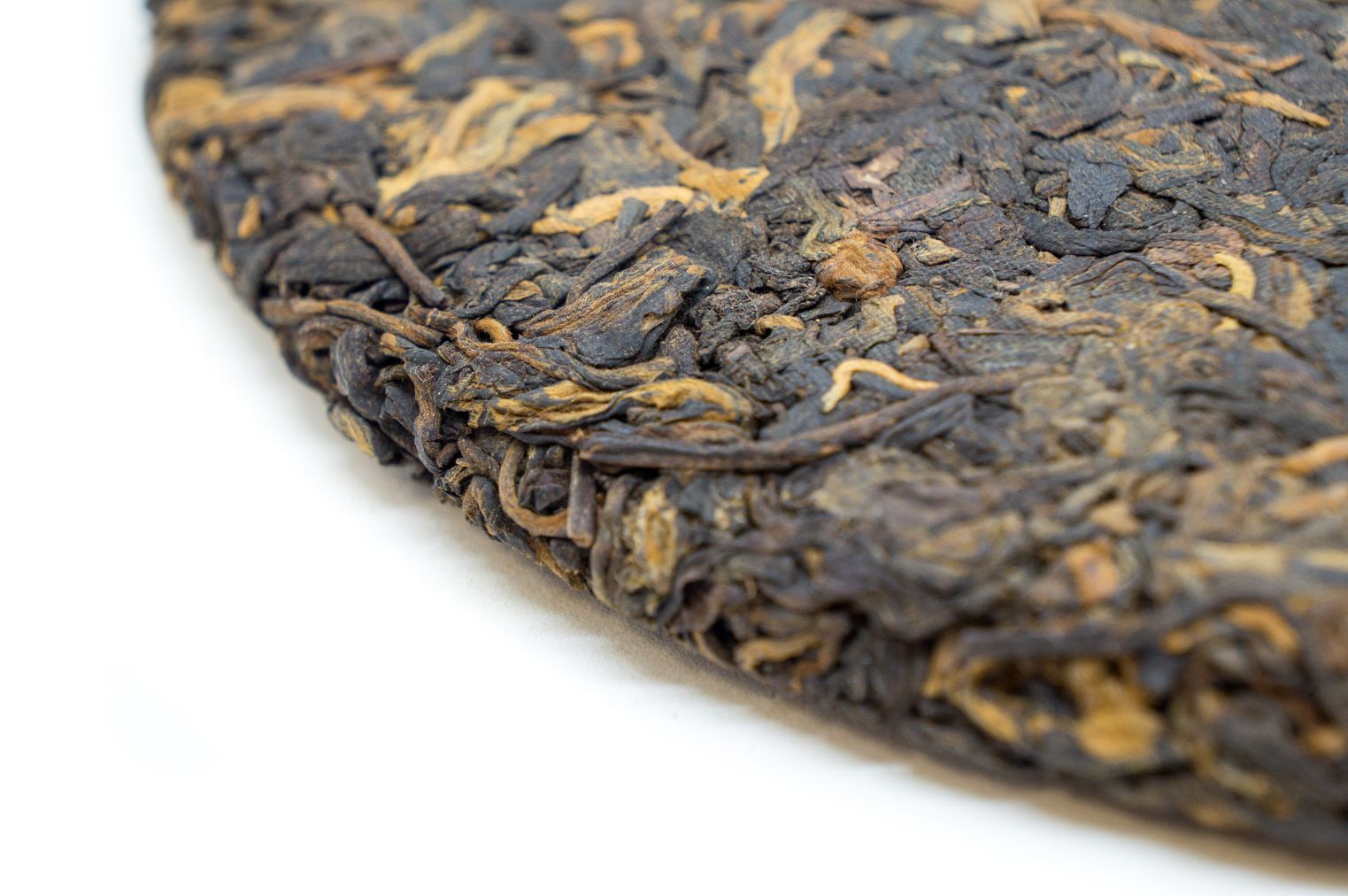 СЫРЬЕ: Шу пуэр Булан Шань имеет среднюю степень запрессовки, состоит из крупных золотых почек и крупно-листового юньнаньского пуэра. Произведен в 2021 году.