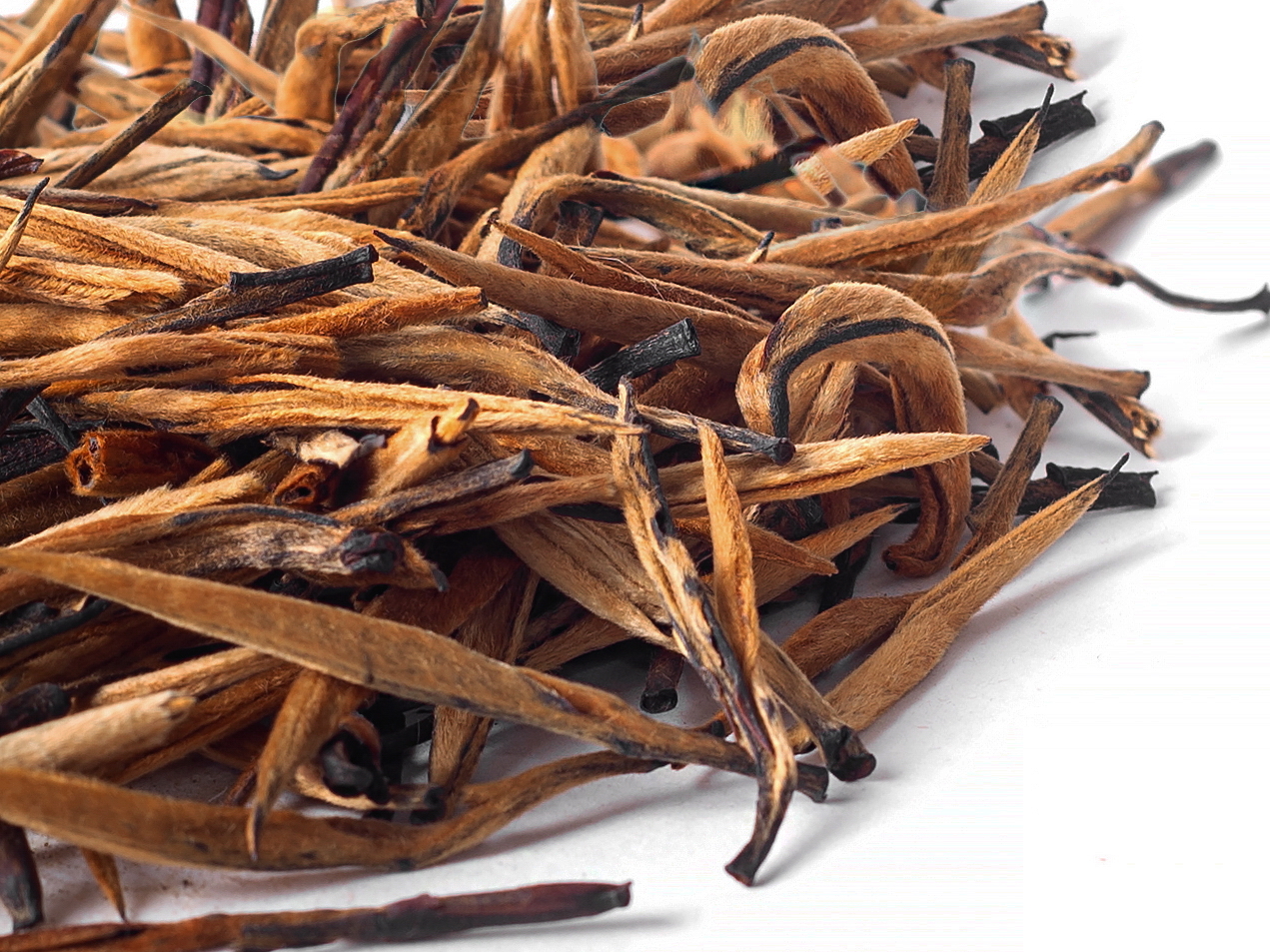 СЫРЬЕ: Крупные золотистые почки и молодые листья, покрытые нежным ворсом. Крупнолистовой сорт Camellia sinensis var. assamica, выращенный в экологически чистых условиях Юньнани.