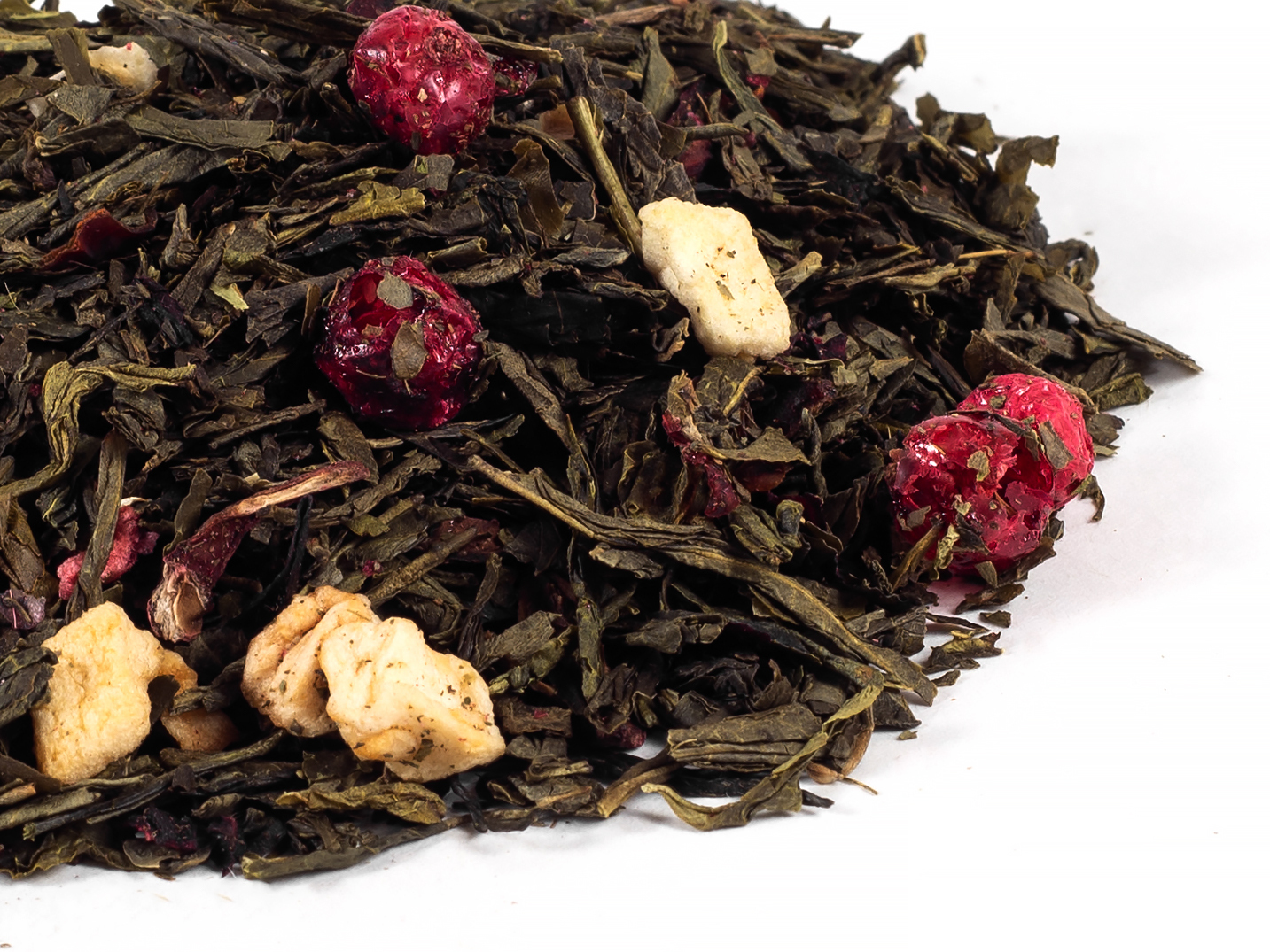 СОСТАВ: Зеленый чай Сенча, каркаде, ягоды шиповника и красной смородины, кусочки яблока, мята, ароматизатор.