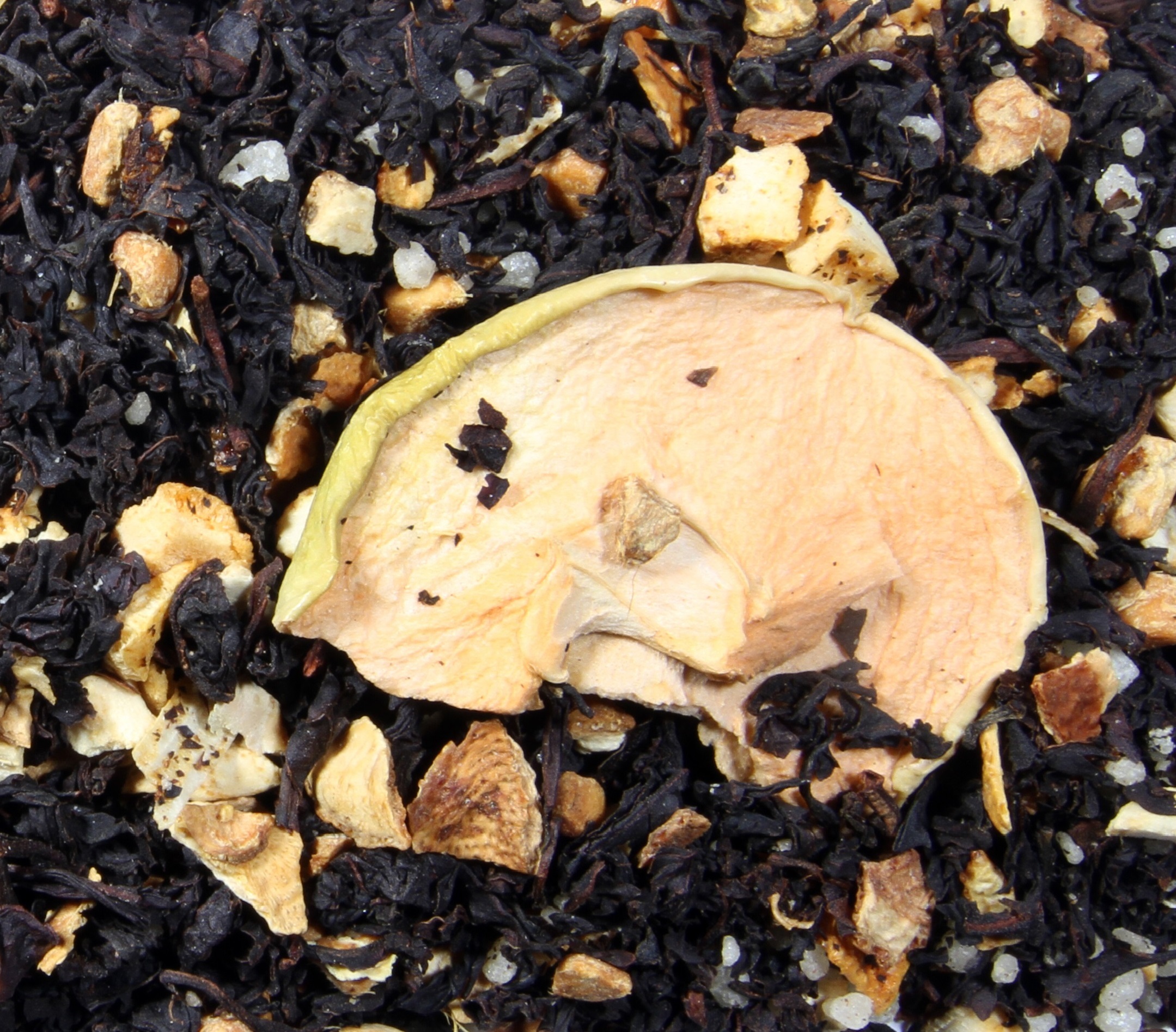 СОСТАВ: Черный чай, дольки яблока, сублимат лимона, цедра лимона, эфирное масло мяты лимонной, имбирь, медовые гранулы, с медовым ароматом