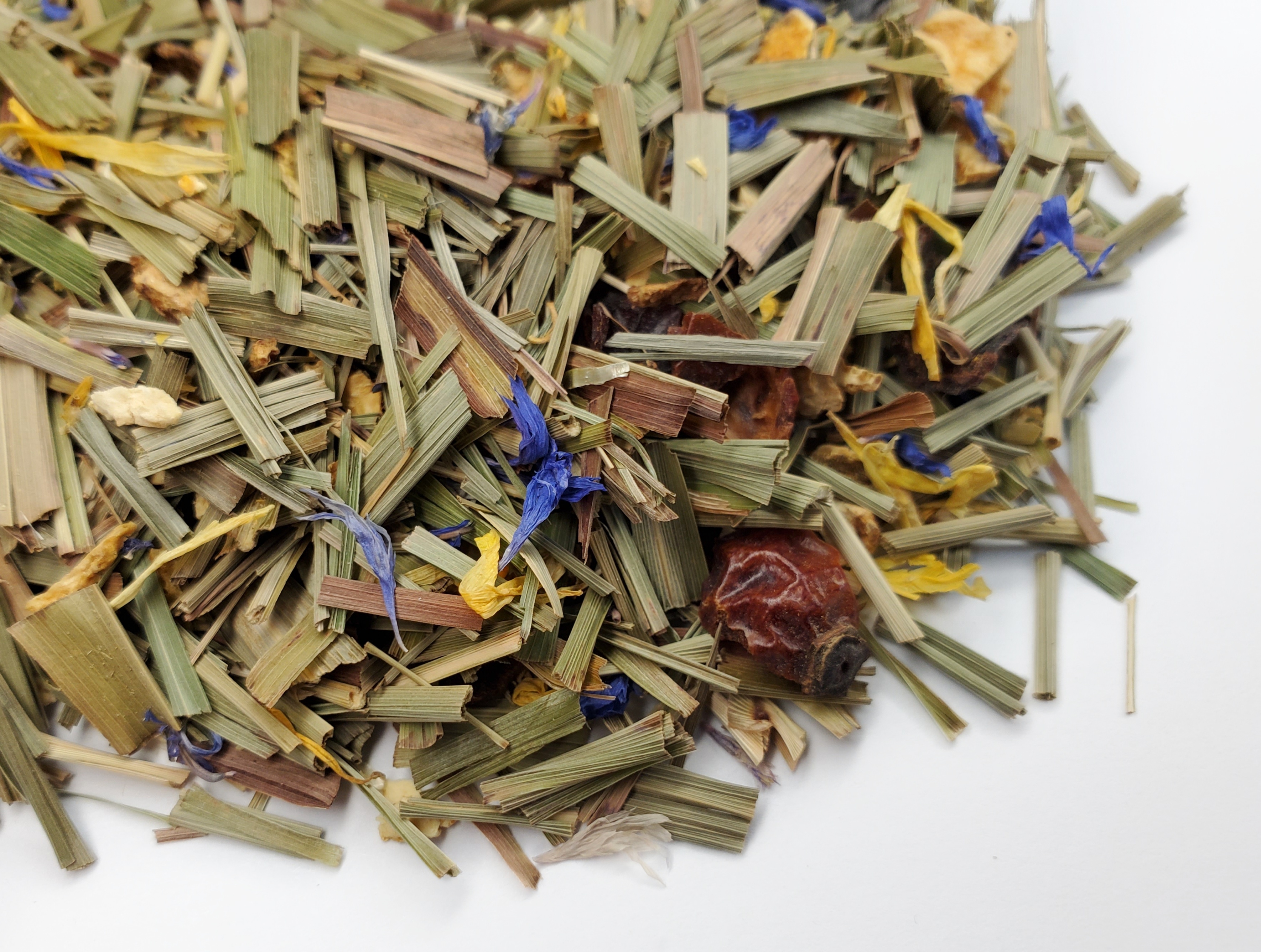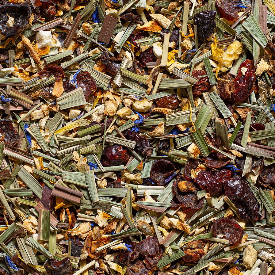 СОСТАВ: 100% НАТУРАЛЬНЫЙ КУПАЖ. Лимонная трава, цедра апельсина, шиповник, манго, цветки календулы, цветки василька.