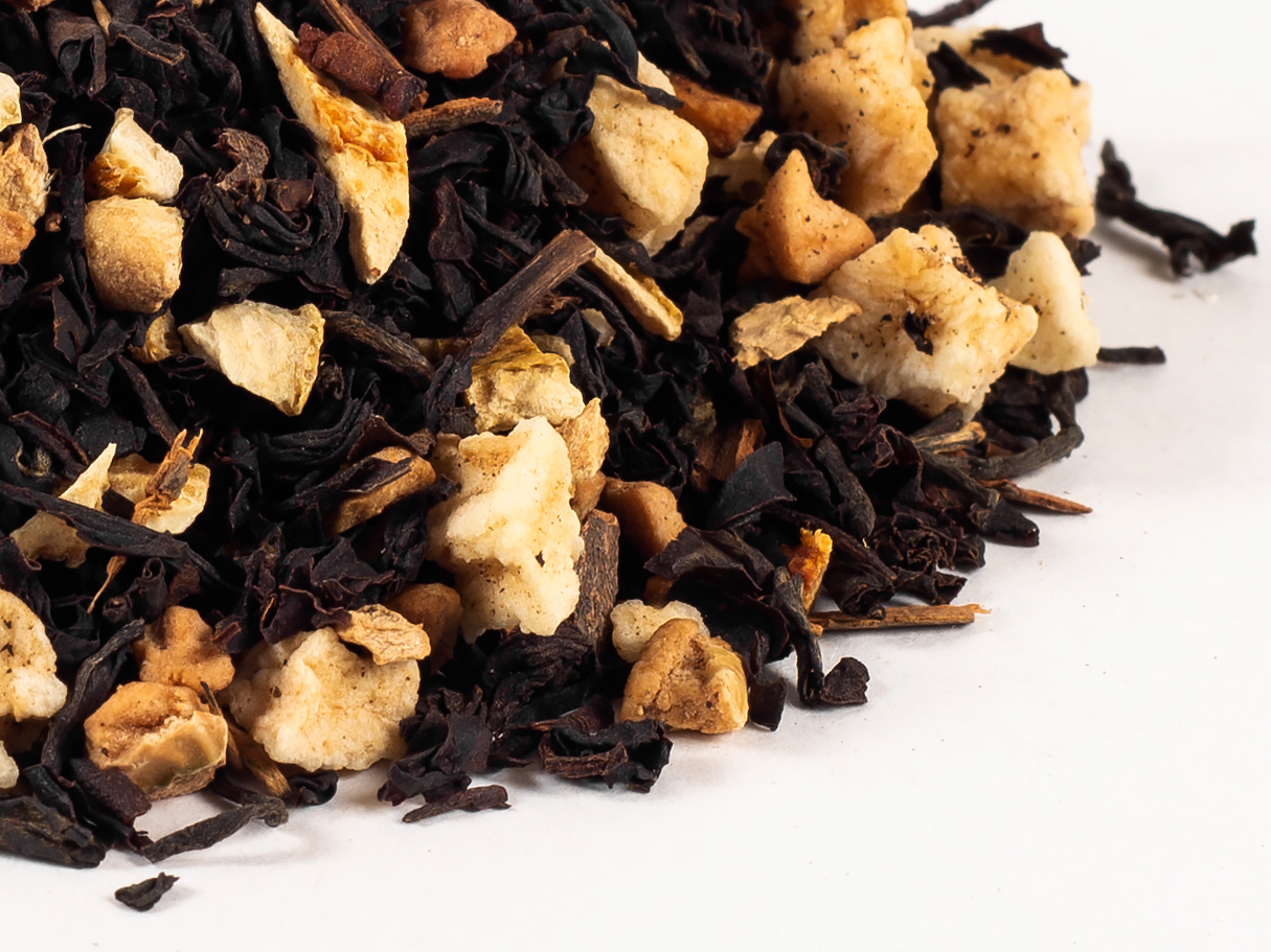 СОСТАВ: Черный китайский чай Дянь Хун, яблоко, имбирь, корица, цедра апельсина, цедра лимона.