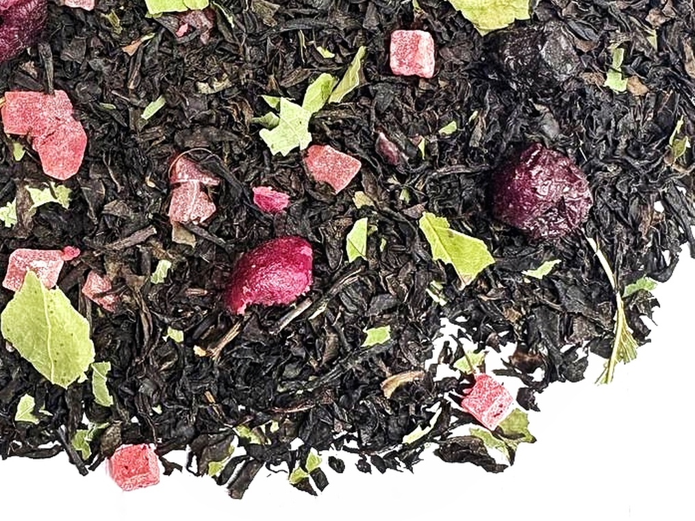 Состав: чай черный Ассам, чай красный Чаньнин Дяньхун, ананас красный цукаты, вишня сушеная целая,вишня сублимат целая, лист вишни сушеный, ароматизатор пищевой.